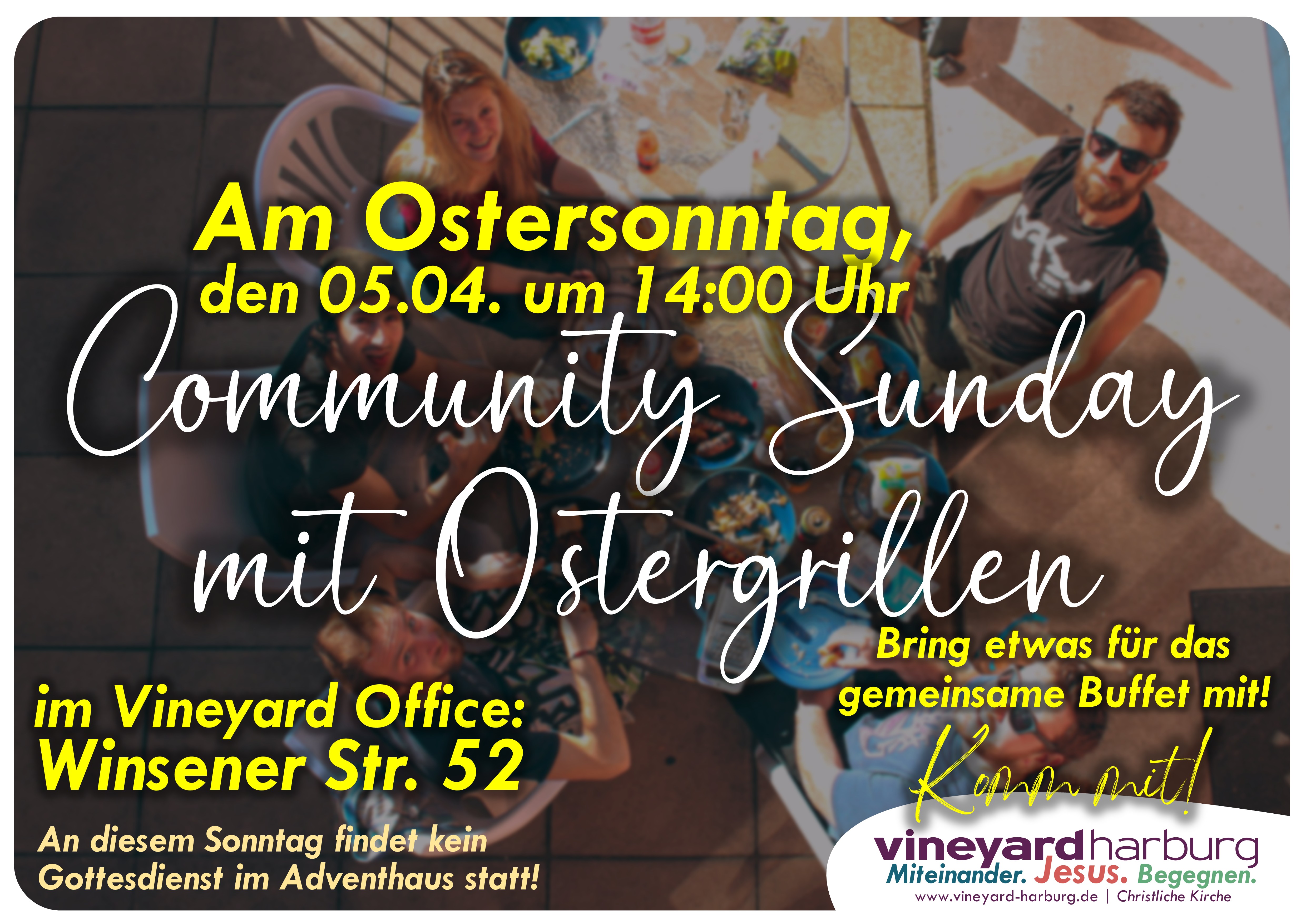 Community Sunday mit Ostergrillen am Ostersonntag, den 5. April um 14:00 Uhr